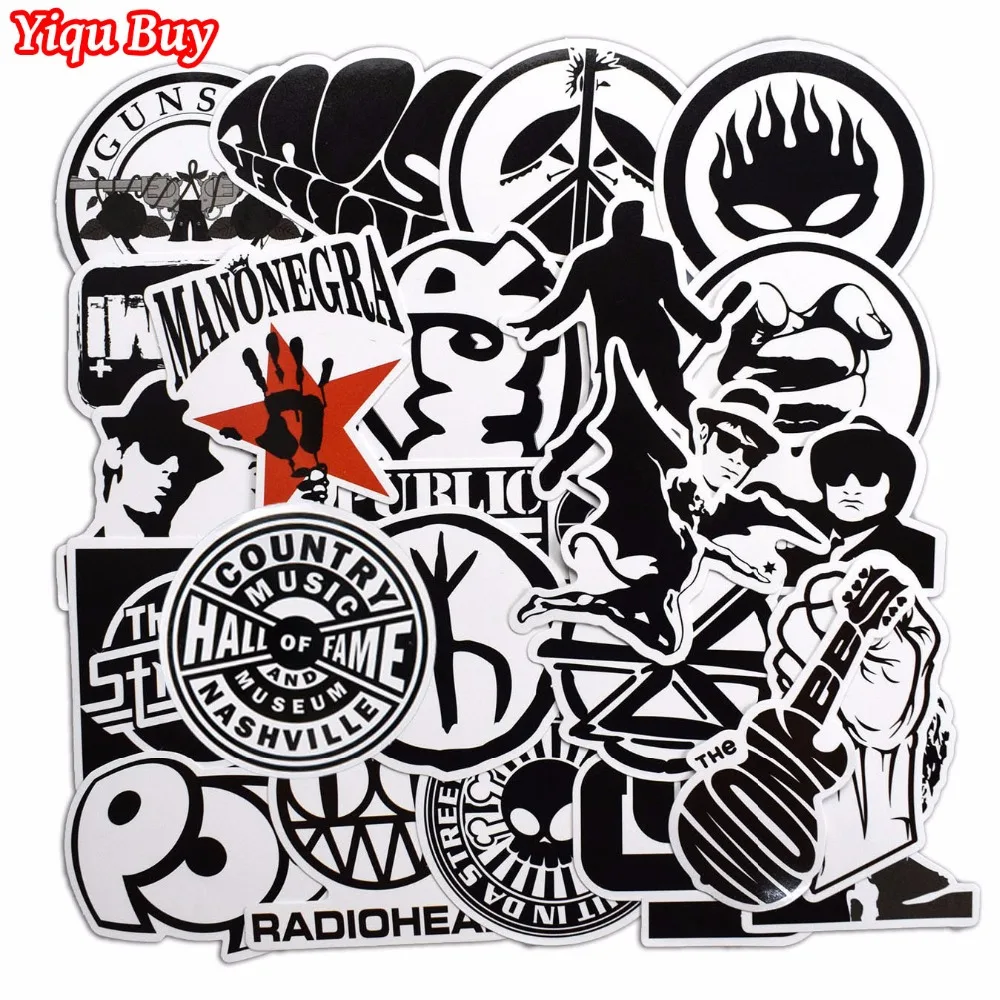 50 Pcs Rock & Roll Black and White Stickers for Laptop Skateboard Luggage Guitar Suitcase Music Punk Graffiti PVC Sticker Pack